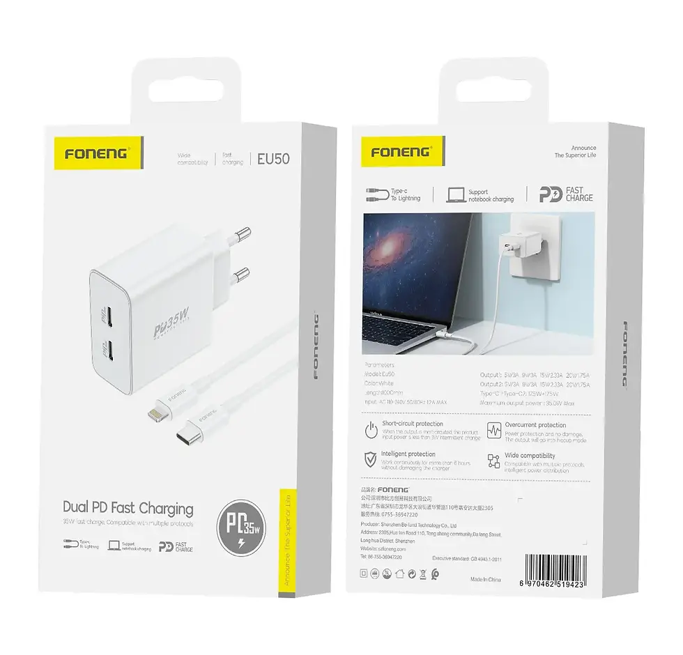 EU50 USB-C 2-Port kucni punjac Type C to Lightning (PD35W)